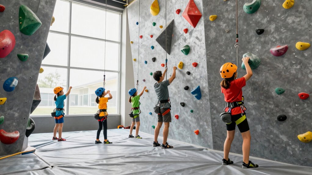 Why is indoor climbing safety especially important for kids? Kids are still developing coordination and strength, making safety vital. Proper climbing attire, like supportive shoes and comfortable clothing, helps prevent slips and injuries. Motivational coaching encourages kids to climb confidently and focus on proper techniques, reducing risky behaviors. When safety measures are prioritized, children learn to respect the equipment and understand their limits. A safe environment not only prevents accidents but also builds their trust and enthusiasm for climbing. Additionally, understanding the Paint Sprayer Zone and proper maintenance of equipment can help ensure a safe climbing environment by preventing hazards related to equipment malfunction or misuse. Regular safety checks and household product awareness further contribute to a secure indoor climbing space, helping to prevent common household hazards. Recognizing the importance of climbing safety guidelines ensures that children develop healthy climbing habits that last a lifetime, fostering a culture of risk awareness from an early age. Incorporating safety protocols into routine training can also reinforce the importance of ongoing vigilance.