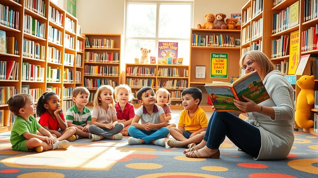 To make the most of story hour, actively participate by asking questions, pointing out illustrations, and engaging your child with sounds or actions related to the story. Encourage their curiosity and predictions, creating a lively shared experience. Bring craft supplies or favorite items to extend the fun afterward, reinforcing themes from the story. For tips on enhancing the experience even more, keep reading to discover practical ideas that transform this special time into a wonderful learning adventure.