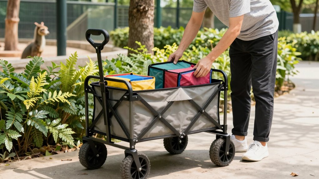 Overloading your stroller wagon might seem like an easy way to carry more gear, but it often leads to unnecessary stress and discomfort during your zoo visit. Exceeding the stroller wagon capacity makes it harder to maneuver and increases the risk of tipping or damage. Packing excess items can also cause the wagon to become unbalanced, making it more difficult to steer smoothly. To avoid these issues, stick to essentials and leave behind unnecessary items. Distribute the weight evenly and prioritize comfort and safety. Remember, a cluttered wagon can slow you down and cause frustration. Keeping your load manageable ensures a more enjoyable experience, allowing you to focus on the fun and exploration rather than struggling with an overloaded wagon.