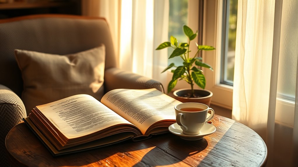 To start again, focus on small, daily micro-habits that make reading feel easy and enjoyable. Set simple goals like reading a page or five minutes each day, and choose content that sparks your interest. Create a cozy space and use reminders to stay consistent. Over time, these tiny actions will build momentum and turn into a fulfilling routine. Keep going, and you’ll discover how small steps can make a big difference.