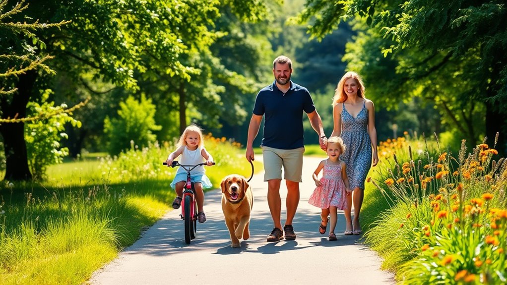 Building a habit of family walks benefits everyone by improving mood, health, and bonds. To succeed, pick a regular time, choose safe routes, and keep it enjoyable with conversation or music. Prepare with proper nutrition and outdoor safety tips, like comfortable shoes and weather awareness. Consistency and making it fun help turn walks into a lasting family tradition. Keep going, and you’ll discover more ways to make family walks a positive, enriching routine for all.