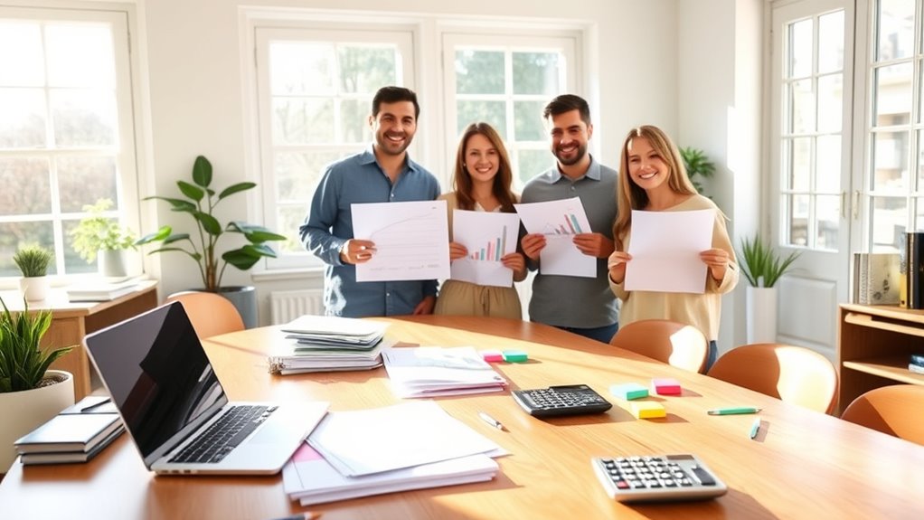 Financial spring cleaning for families involves reassessing your investments, setting clear goals, and automating routines to keep your finances on track. Review and realign your retirement accounts, stocks, bonds, and real estate to match your long-term plans. Create manageable steps for savings like college funds or debt payoff, and set automatic transfers to stay consistent. Building sustainable habits now will promote financial stability, and exploring these strategies further can help guarantee a healthier financial future.