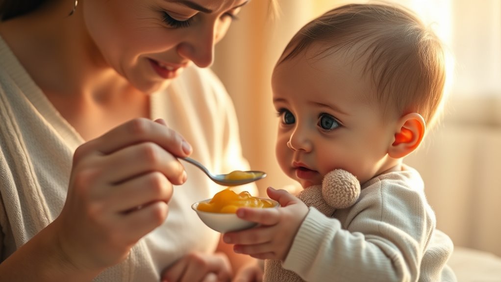 A gradual, gentle approach to weaning involves recognizing your baby’s readiness cues, such as sitting steadily and showing curiosity for solids. Start by introducing small spoonfuls of pureed foods, letting your baby lead and ensuring breastfeeding continues as the main nutrition source. Pay attention to emotional signals, and don’t rush if they seem disinterested—patience is key. With consistent, tender steps, you’ll help your little one shift smoothly, and if you keep going, you’ll discover how to support this comforting process even better.