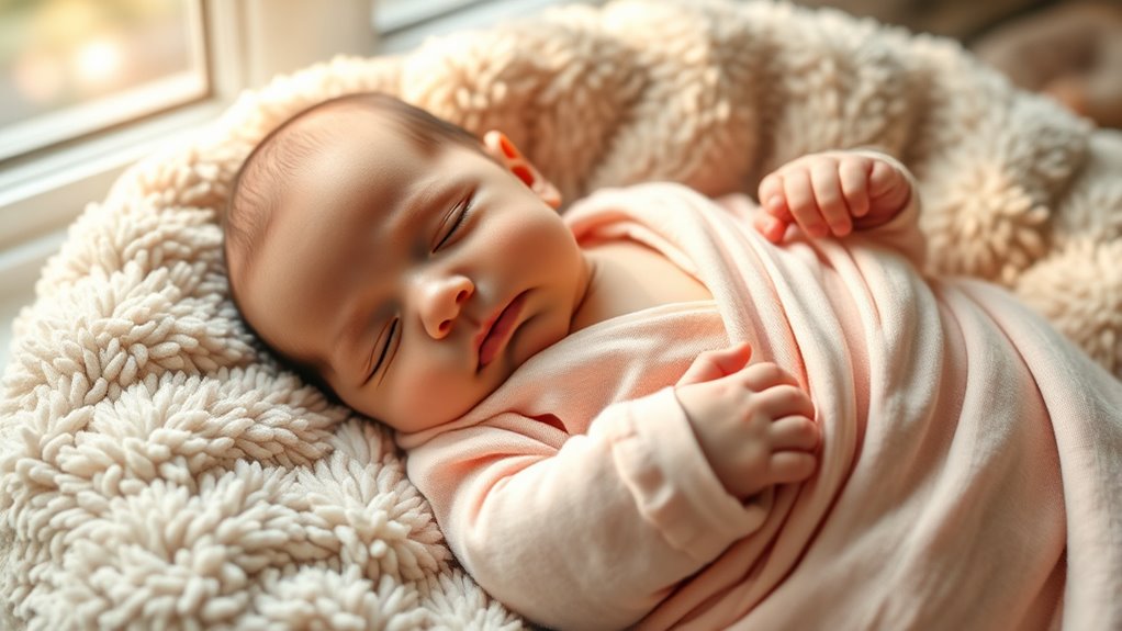 In the early days, your newborn’s sleep patterns are short and irregular, with sleep occurring in brief stretches throughout the day and night. They typically wake for feeding every 2-3 hours since their stomach is small, and their sleep cycles are much shorter and more sporadic than an adult’s. As their internal clock matures, their sleep lengthens and becomes more predictable. Keep exploring to understand how these early habits evolve and how you can support healthy sleep development.