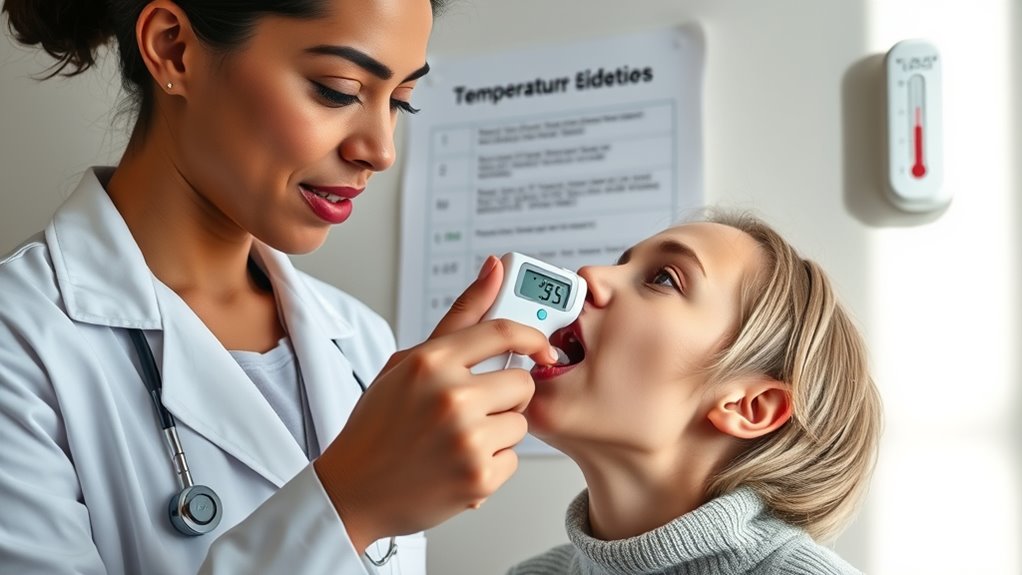 Your normal body temperature typically ranges from about 97°F to 99°F. Keep in mind, temperature fluctuations happen throughout the day due to activity, eating, or weather. A fever usually starts at or above 100.4°F, which signals you should monitor your symptoms. If your temperature exceeds 102°F or persists, it’s time to call a healthcare professional. Staying aware of fever thresholds helps you act promptly and stay healthy.