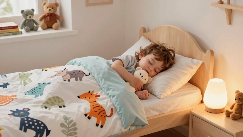 Setting up a safe and cozy sleep environment abroad requires careful planning to guarantee your toddler feels secure and comfortable. Focus on creating a familiar atmosphere by paying attention to nursery decoration, which can include soft lighting, calming colors, and familiar bedding. To facilitate a smooth transition, consider these steps: