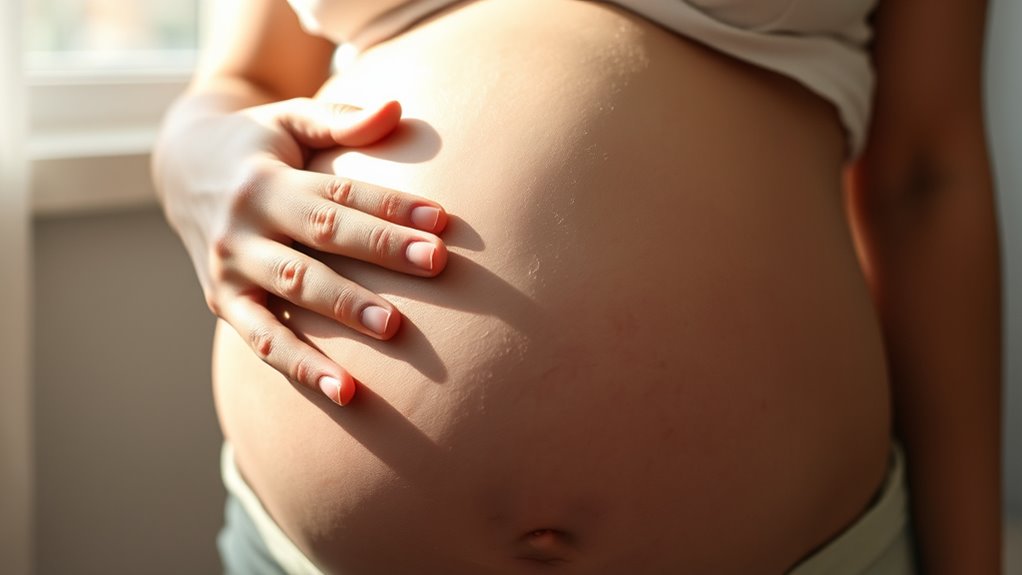 If you notice a sudden decrease in movements, you should act promptly. Fetal sleep cycles and maternal activity can influence movement patterns, but a significant drop may signal a concern. Try lying down on your side and counting kicks for a few hours. If movements don’t pick up or you’re worried, contact your healthcare provider immediately to guarantee your baby’s well-being. Don’t wait—trust your instincts.