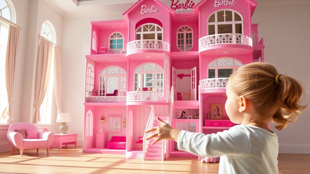 Think of safety features as the sturdy walls of a dream house, protecting what’s inside. In the 2025 Barbie Dreamhouse sets, you’ll find rounded edges, non-toxic paints, and secure doors to keep playtime safe. I love how these details symbolize care and trust, ensuring kids can enjoy their imaginative adventures worry-free. It’s like building a fortress of fun that’s just as safe as it is exciting.