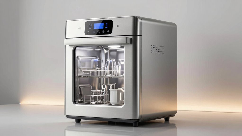 These bottle washer sterilizer dryer combos are quite energy-efficient, especially newer models designed with eco-conscious features. I’ve noticed they use less water and power compared to older units, thanks to advanced sensors and energy-saving modes. While they do consume some energy, they’re designed to optimize performance without wasting resources, making them a smart choice for eco-friendly parents like you and me who want convenience without high utility bills.
