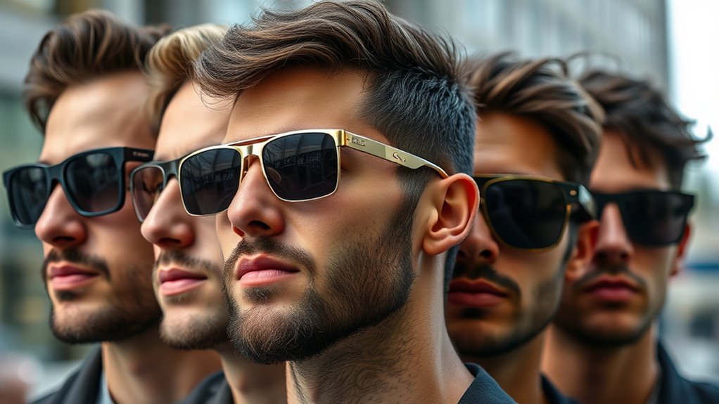 In 2025, men’s sunglasses are all about bold shapes and innovative materials. I love the oversized frames making a statement, while retro-inspired designs are making a comeback. Matte finishes and metallic accents add a modern touch, and sustainable options are gaining popularity. I recommend trying out geometric styles or classic aviators with a twist—these trends keep your look fresh, stylish, and in tune with the latest fashion waves.