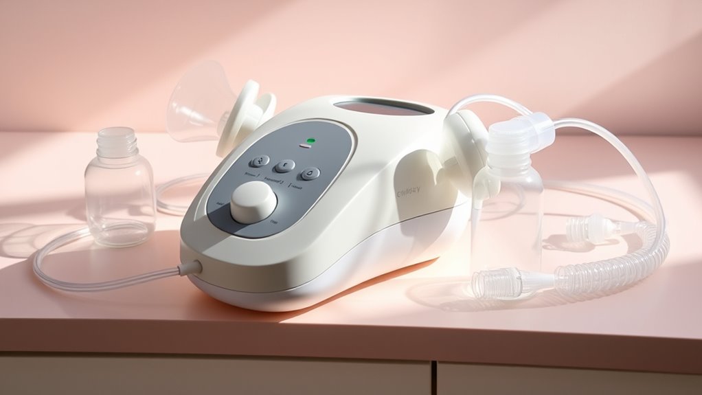 A hospital-grade pump is like a trusty lighthouse guiding a ship through stormy seas, built to last. Typically, these pumps serve for about 2 to 5 years, depending on usage and maintenance. I’ve seen well-cared-for units operate smoothly beyond that timeframe, offering reliable support for breastfeeding journeys. Proper cleaning and following manufacturer instructions can extend their lifespan, ensuring they remain a steadfast companion through your breastfeeding experience.