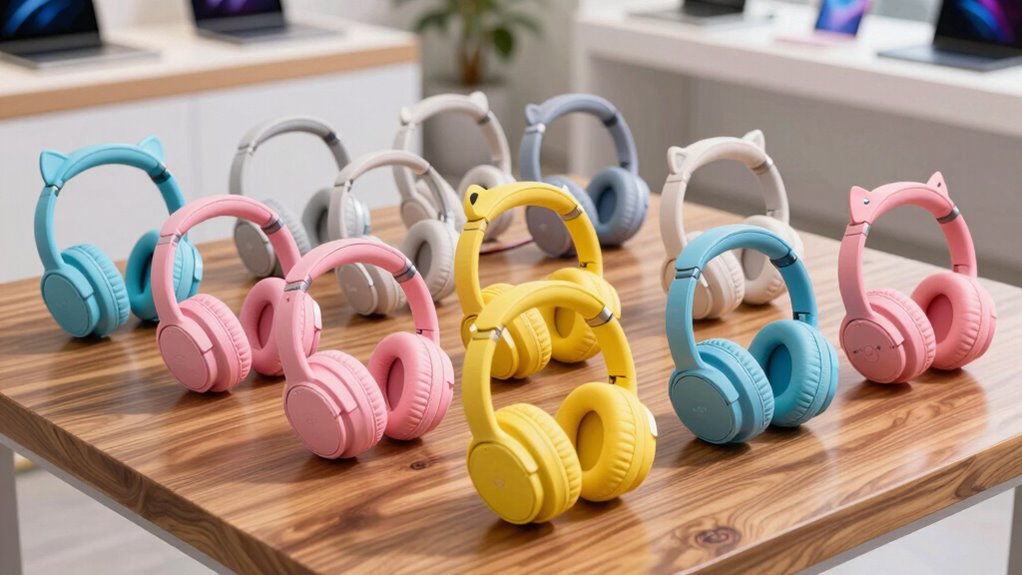Choosing the right kids’ noise-canceling headphones involves more than just sound quality—they need to fit comfortably and securely. An adjustable headband and rotatable ear cups are essential for customizing the fit across different head sizes. Soft, plush ear cushions made from skin-friendly materials prevent discomfort during extended use. A proper fit creates a good seal around the ears, maximizing noise reduction without sacrificing comfort. Look for headphones with multiple size options or adjustable components to accommodate growing children and various head shapes. It’s vital that the fit isn’t too tight, which can cause pressure points, or too loose, risking slippage. A well-fitting pair ensures your child stays comfortable and focused, whether using headphones for travel, study, or play.