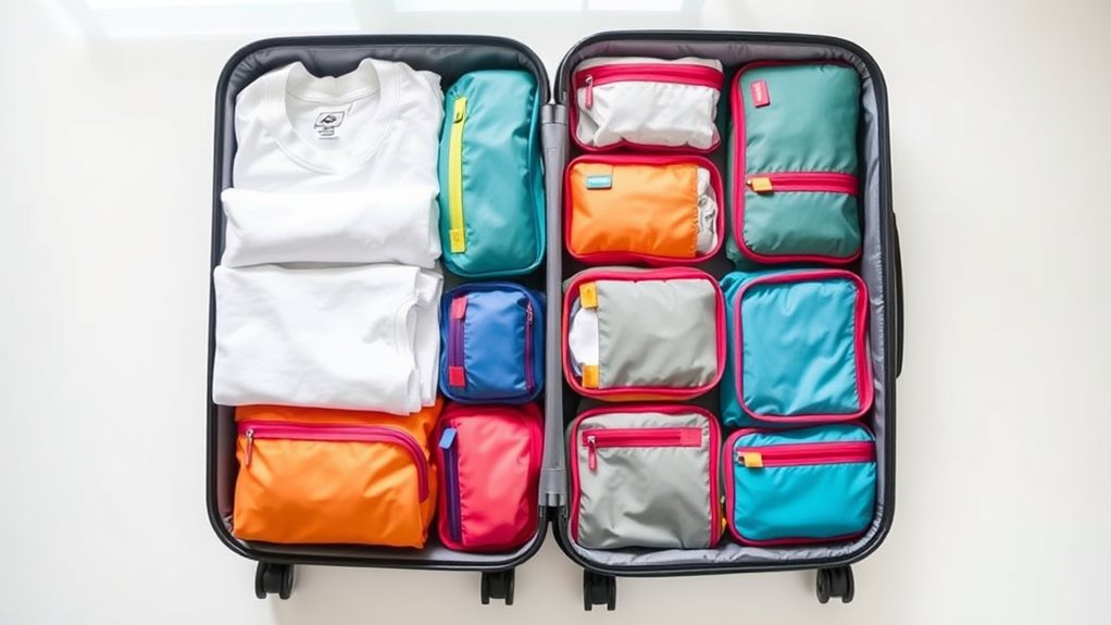 Packing cubes help prevent overpacking by encouraging me to organize my clothes efficiently and see exactly what I have. They keep everything compact and visible, so I avoid tossing extra items in just in case. When I use cubes, I stick to a set amount of space, making it easier to prioritize essentials and resist packing unnecessary things. It’s a simple trick that keeps my bag manageable and stress-free.