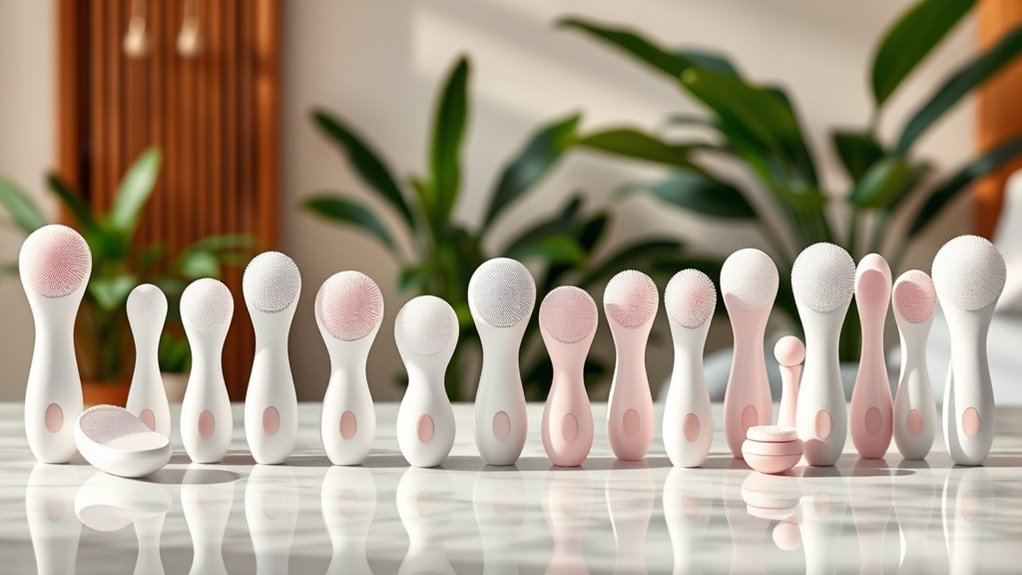 Once I started using a premium facial cleansing brush, it felt like upgrading from a gentle breeze to a powerful gust—transforming my skincare routine completely. Just like a fine-tuned instrument, the right brush can make your skin sing with clarity and glow. Remember, choosing the perfect one is like finding that perfect key—unlocking spa-quality results right at home. Trust me, your skin will thank you for the upgrade!