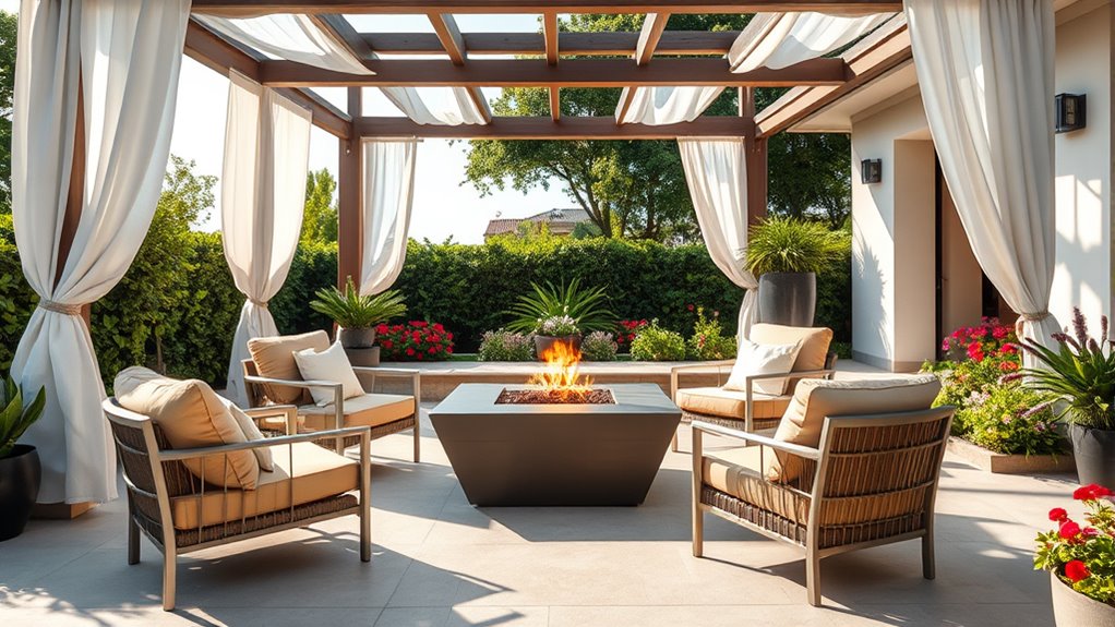 When selecting premium patio furniture, weather resistance is crucial to guarantee your investment lasts through various outdoor conditions. I look for materials like PE wicker, powder-coated steel, or aluminum, which stand up to rain, snow, and sun without deteriorating. Cushions with water-repellent and fade-resistant covers keep comfort and appearance intact despite exposure to elements. I also prioritize furniture with sealed or treated surfaces that resist cracking, warping, and corrosion over time. Features like UV protection and waterproof coatings are essential for durability in diverse climates. To extend the life of my furniture, I make sure to cover or store cushions during harsh weather. These weather-resistant features ensure my outdoor setup remains beautiful and functional year-round.