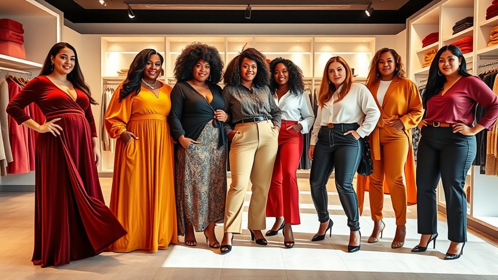 To find the best fit for plus-size clothing, I always start by knowing my measurements—bust, waist, hips—and compare them to the brand’s sizing chart. I look for reviews about fit and fabric stretch, and I prefer brands that offer detailed sizing info. Trying items on in-store or buying from places with good return policies helps me make certain I get comfortable, flattering pieces that truly fit.
