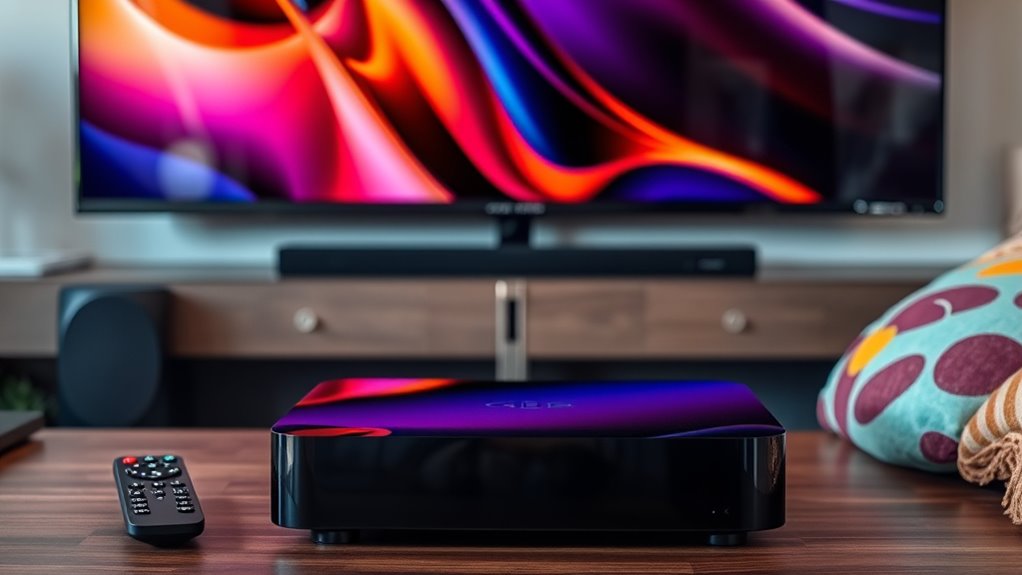 Ever wondered if streaming app compatibility is a problem? I’ve found that premium streaming media players are designed to support a wide range of apps, reducing compatibility issues. However, some apps may still have glitches or updates that cause temporary hiccups. Overall, I recommend choosing a reputable device and keeping its software up-to-date to guarantee smooth access to your favorite streaming services without frustration.