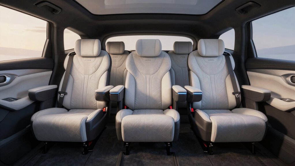 Rotating car seats aren’t suitable for all vehicle types. I’ve found they work great in larger cars or SUVs, but can be tricky in smaller cars or those with limited space. It’s vital to check your vehicle’s size and seat placement before choosing one. I always recommend measuring your space and consulting the manufacturer’s guidelines to guarantee a safe, comfortable fit for your kids and ease of use.