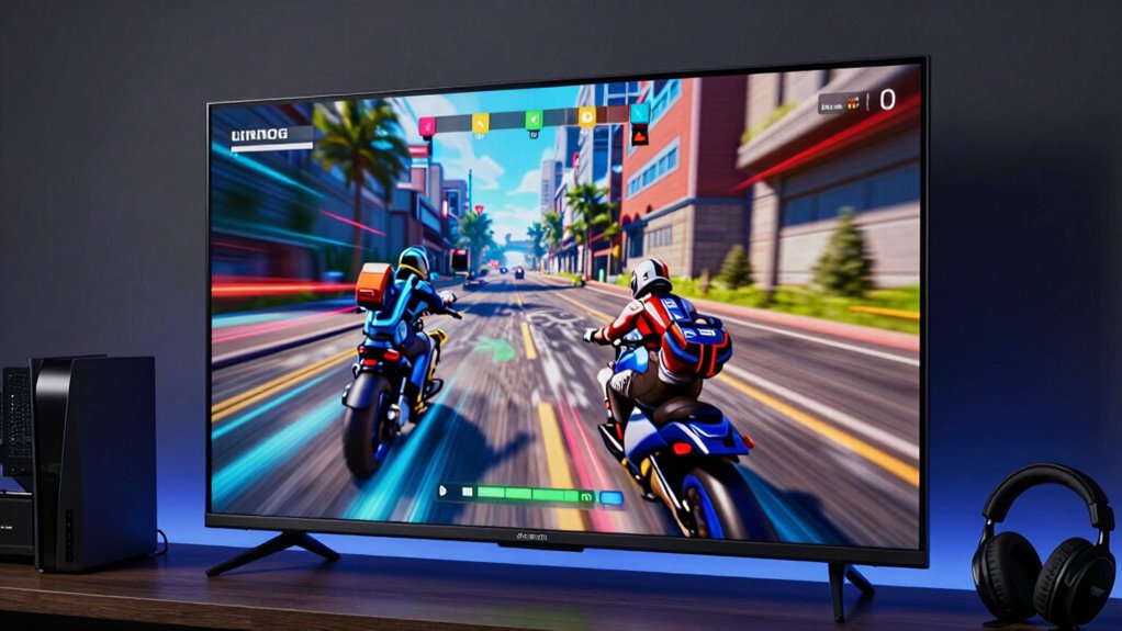 Ever wondered how some TVs deliver lightning-fast response times tailored for gaming? It’s often thanks to dedicated gaming mode options. These modes typically include features like VRR (Variable Refresh Rate) and ALLM (Auto Low Latency Mode), which work together to reduce input lag and eliminate screen tearing. Many gaming modes automatically optimize picture settings for faster response times, minimizing latency during gameplay. However, the availability of these modes depends on the TV model and firmware updates, so it’s essential to verify support before buying. Some advanced gaming modes, like Game Mode Pro, can push input lag below 10 milliseconds, ideal for competitive gaming. Customizable options for response time and refresh rates are also common, giving gamers more control over their experience.