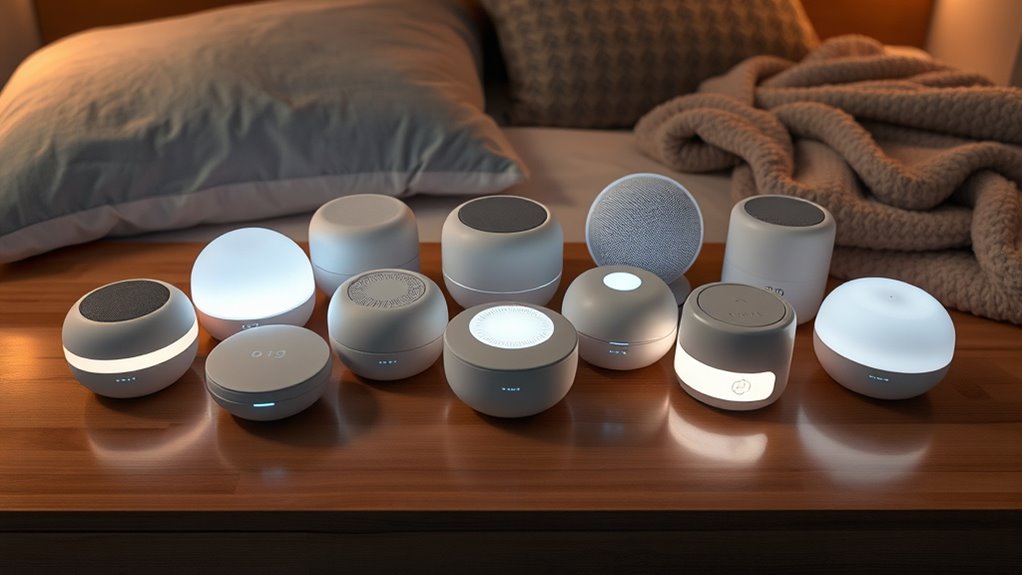 If you’re looking for the top high-fidelity white noise machines for deep sleep and focus, I’ve found 15 standout options. They offer advanced sound quality, multiple sound choices, customizable timers, and portable designs. Some come with soothing night lights or Bluetooth features for personalized use. Whether you need a compact travel model or a powerful home setup, these machines provide clear, natural sounds that mask environmental noise. Keep exploring—there’s more to discover to match your perfect relaxation companion.
